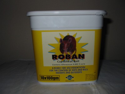 Roban cut wheat bait. suitable for rats and mice in 10 x 100gm sachets. can be opened for bait stations or left whole for mice to nibble. active ingredient -difenacoum£6.56 exc VAT