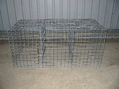 self assembly larson trap. decoy is placed in centre with a top entry and a side entry cage either side. delivered flatpackedContact Us For Details